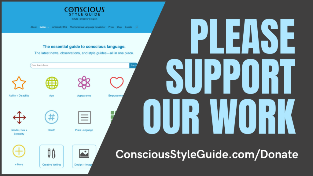 The Conscious Style Guide newsletter rounds up the best news and blog posts from the world of kind, compassionate, mindful, empowering, respectful, and inclusive language. Note: Spotlighting an opinion is not intended as an endorsement. Please send news tips to [email protected].